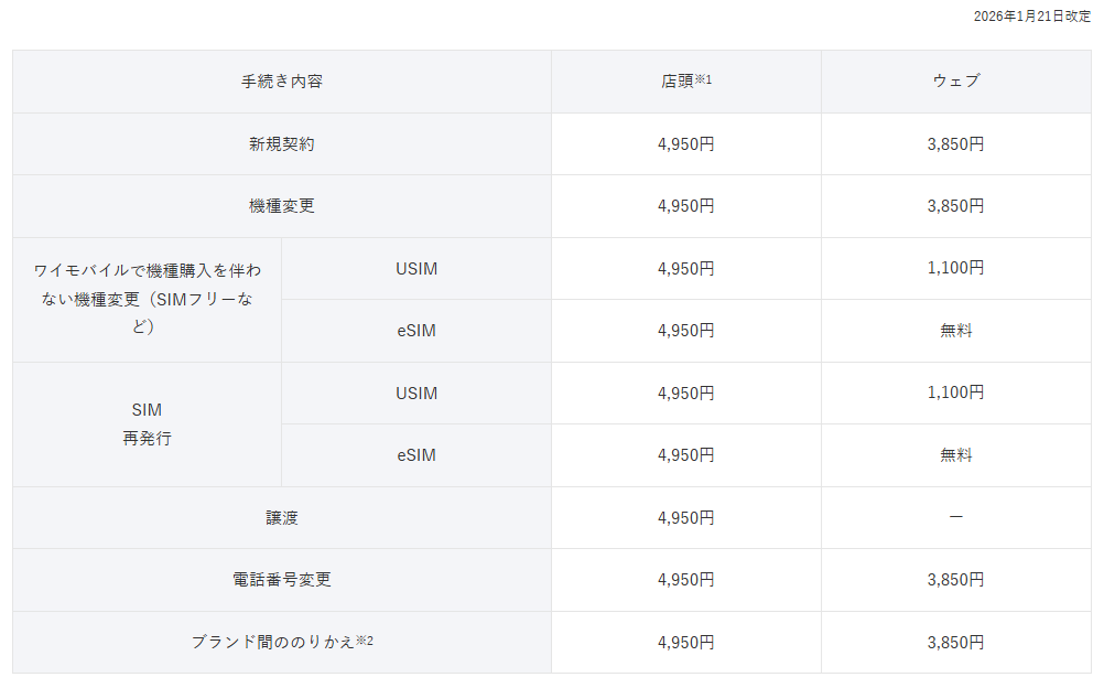 - ワイモバイルオンラインストアでの申し込みにも契約事務手数料がかかるようになった