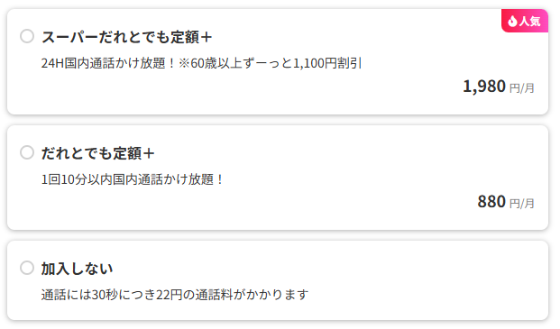 スーパーだれとでも定額+/スーパーだれとでも定額(S)に未加入の場合