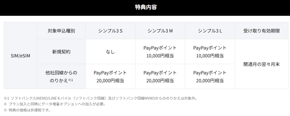 【最大10,000円相当のPayPayポイント付与】SIMご契約特典