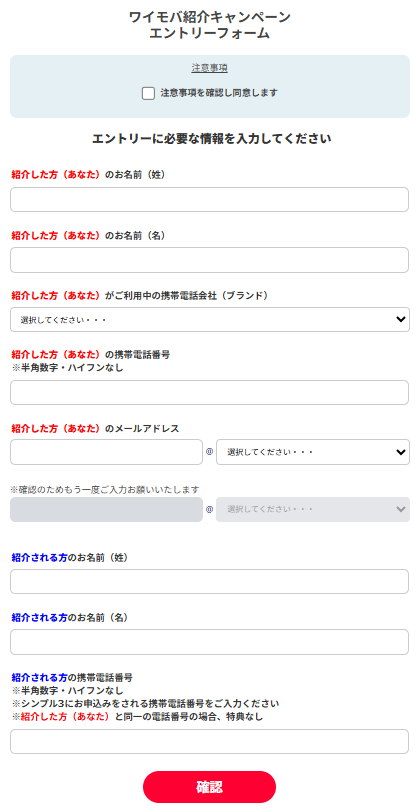 相手にワイモバイルに申し込んでもらってから、エントリーするのが正規の流れになります。