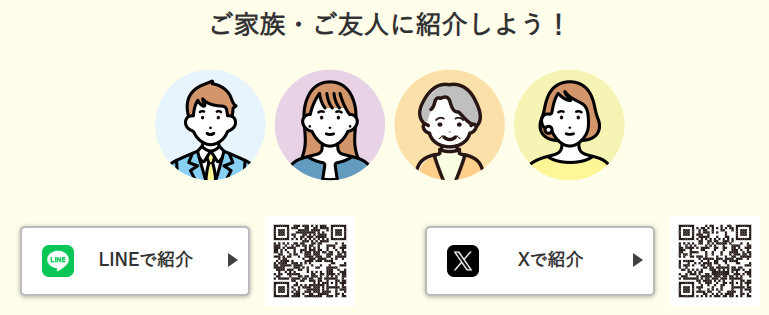 ワイモバイルの紹介キャンペーンのページでは、「LINEで紹介」「Xで紹介」というボタンがあり、ボタンをタップすれば紹介したい相手にリンクを送ることができます。